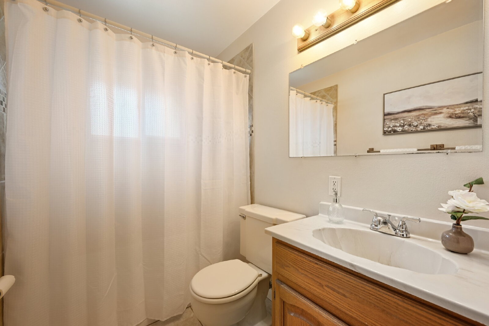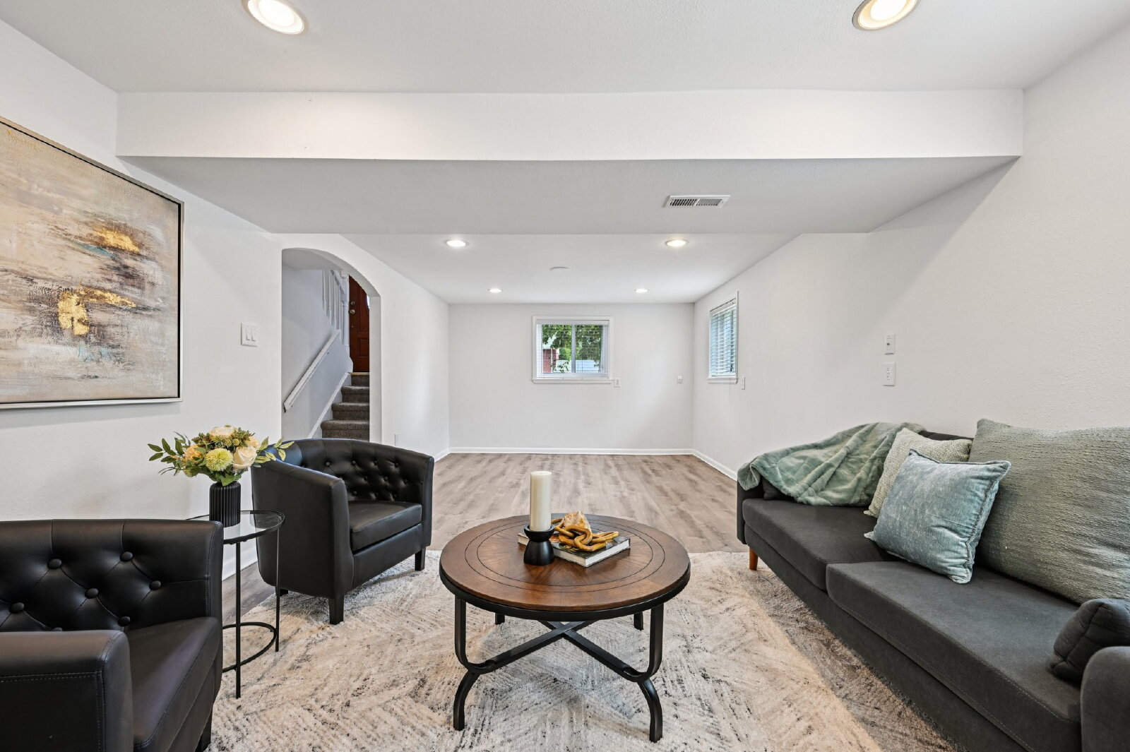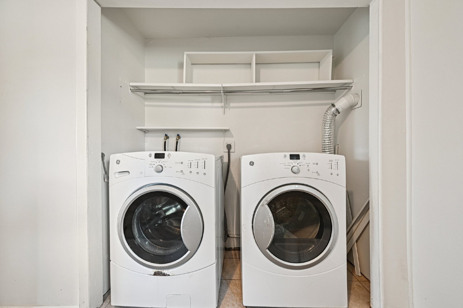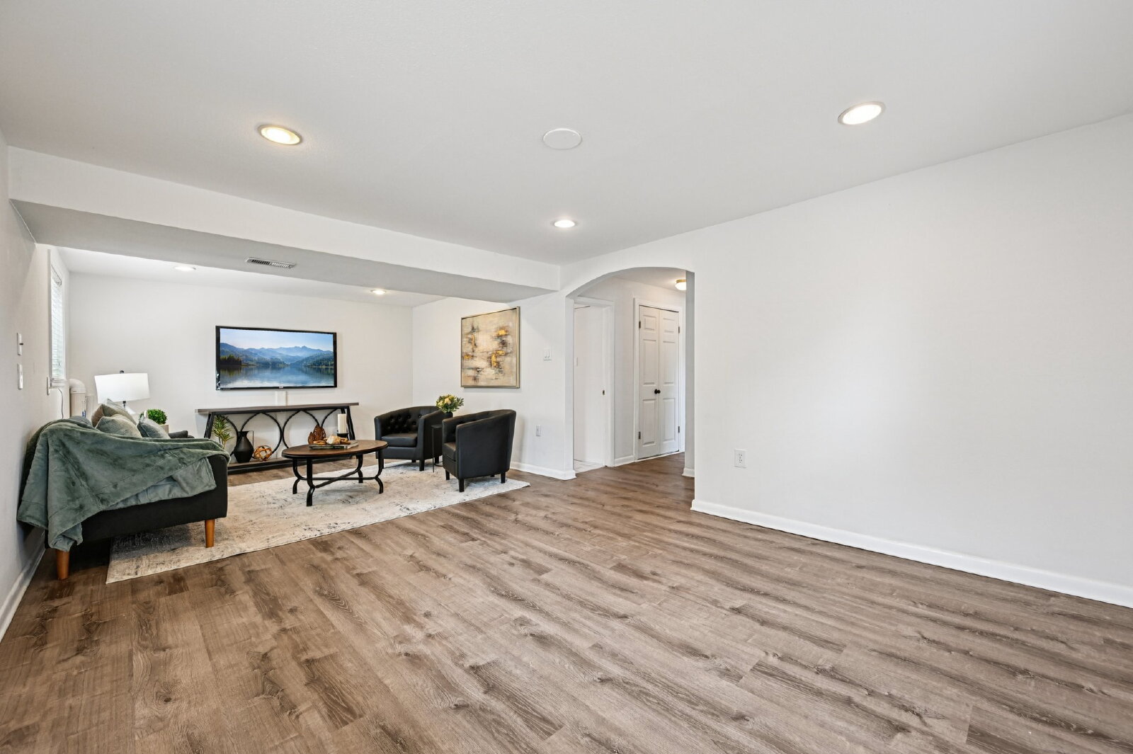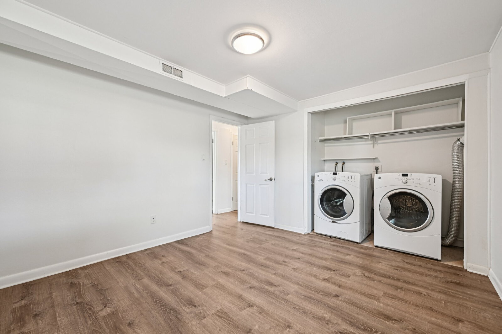 The second level of the home includes an additional family/living room and enterainment area with luxury vinyl plank flooring and updated canned lights. In addition to the upstaris bedrooms, there is a large room on this level that can be used as a fourth bedroom or office space. The bedroom closet houses a full sized washer and dryer, hidden from view. The layout of this home provides flexible, comfortable living spaces across two levels - perfect for families or roommates.